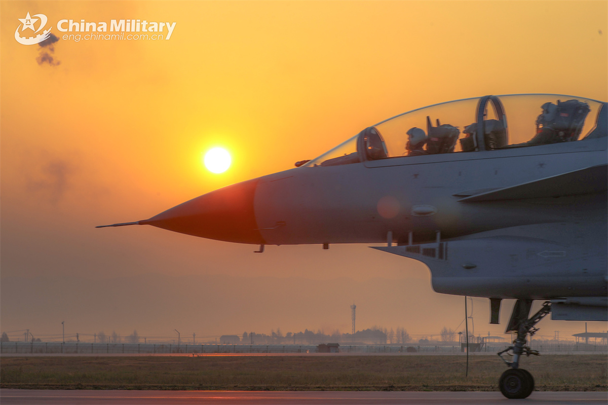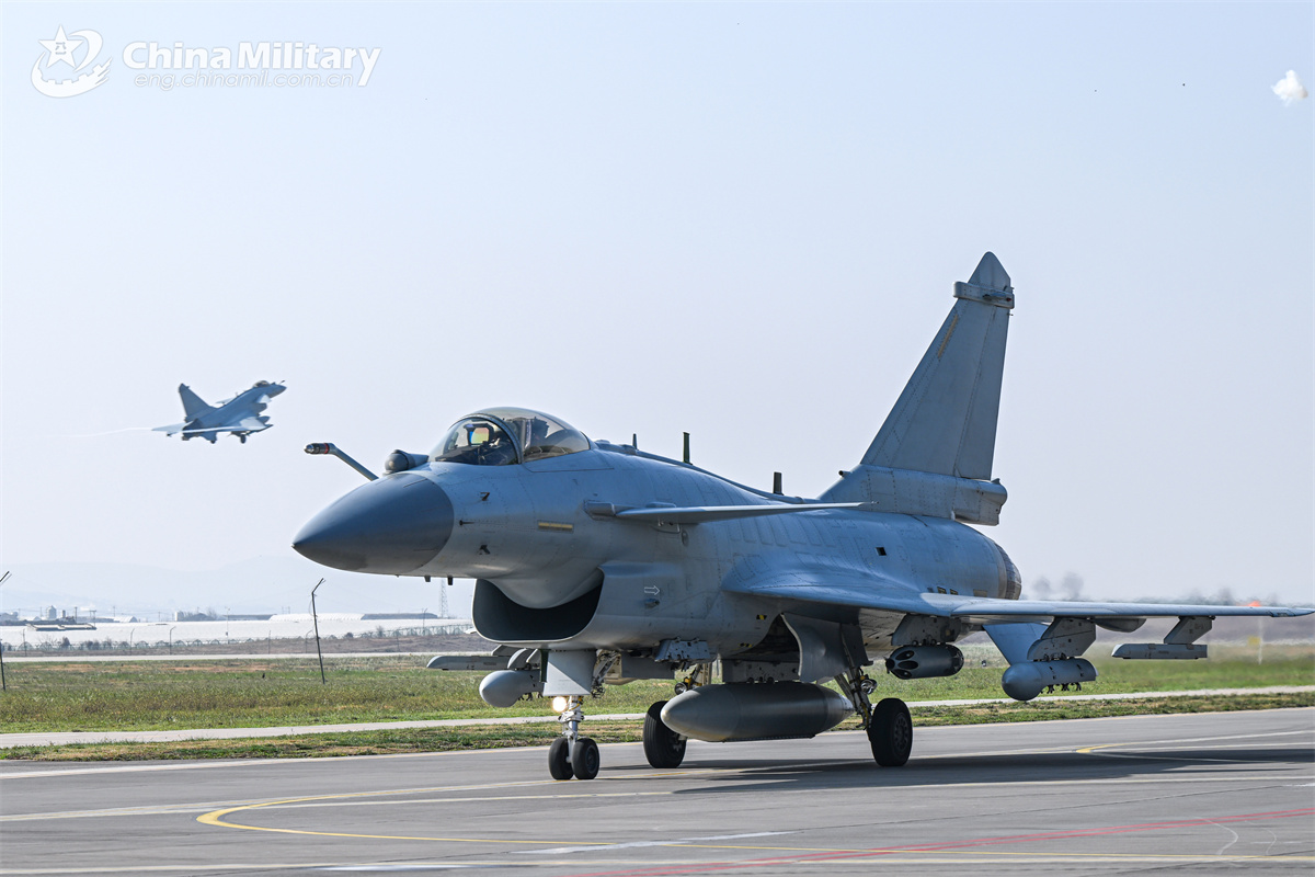 A J-10 fighter jet attached to an aviation brigade with the air force under the Chinese PLA Southern Theater Command taxis on the runway during a multi-subject live-fire ground attack training exercise on February 20, 2025. (eng.chinamil.com.cn/Photo by Guo Yaohui)