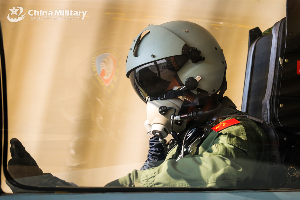 A pilot assigned to an aviation brigade with the air force under the Chinese PLA Southern Theater Command adjusts himself for take-off during a multi-subject live-fire ground attack training exercise on February 20, 2025. (eng.chinamil.com.cn/Photo by Wang Guoyun)