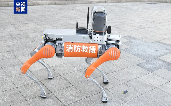 Photo shows a robotic dog employed by the fire and rescue detachment of Qingdao, east China's Shandong Province. (Photo/CCTV News)