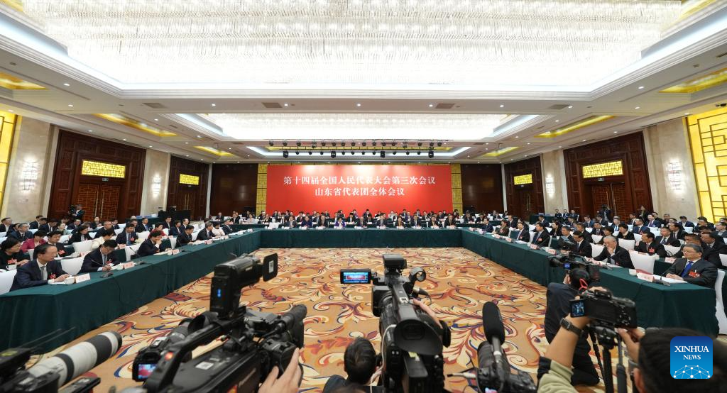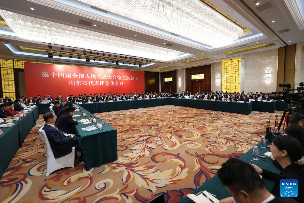 A group meeting of deputies from the delegation of Shandong Province is held at the third session of the 14th National People's Congress (NPC) in Beijing, capital of China, March 6, 2025. (Xinhua/Zheng Huansong)