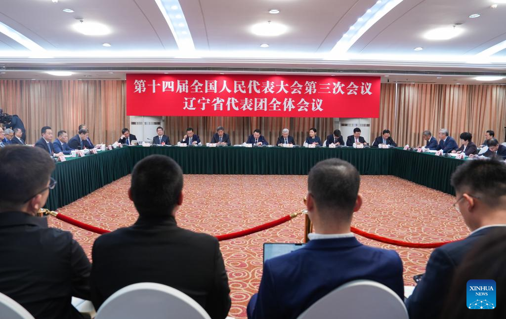 A group meeting of deputies from the delegation of Liaoning Province is held at the third session of the 14th National People's Congress (NPC) in Beijing, capital of China, March 6, 2025. (Xinhua/Li Xiao)