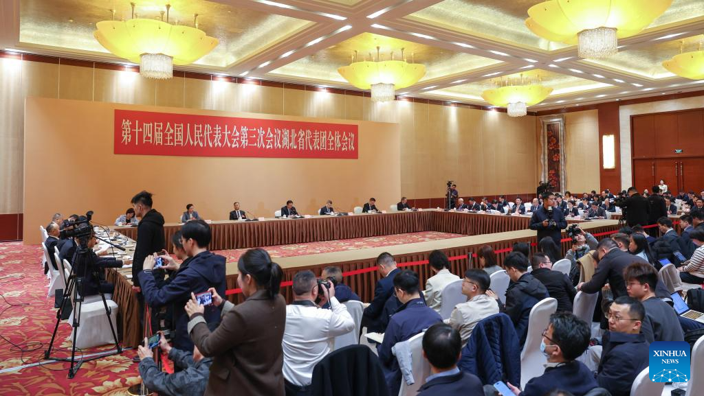 A group meeting of deputies from the delegation of Hubei Province is held at the third session of the 14th National People's Congress (NPC) in Beijing, capital of China, March 6, 2025. (Xinhua/Lyu Shuai)