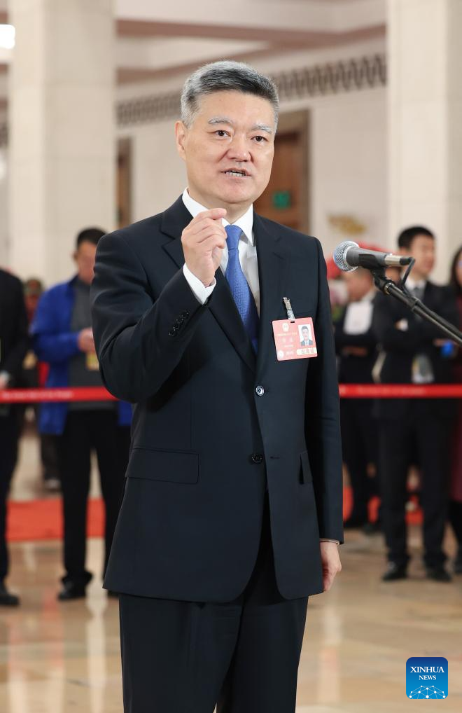 Ma Xinqiang, a deputy to the 14th National People's Congress (NPC), attends a group interview ahead of the second plenary meeting of the third session of the 14th NPC at the Great Hall of the People in Beijing, capital of China, March 8, 2025. (Xinhua/Zheng Huansong)