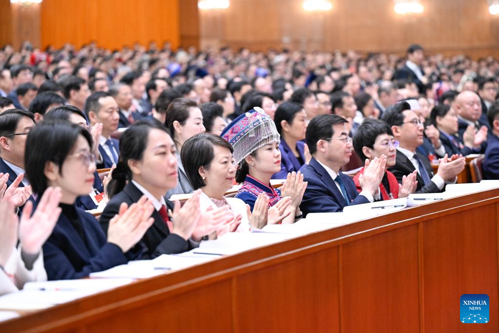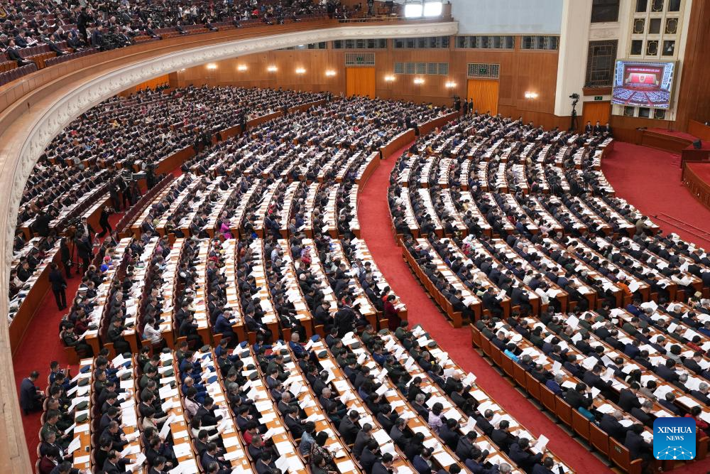 The second plenary meeting of the third session of the 14th National People's Congress (NPC) is held at the Great Hall of the People in Beijing, capital of China, March 8, 2025. (Xinhua/Huang Jingwen)