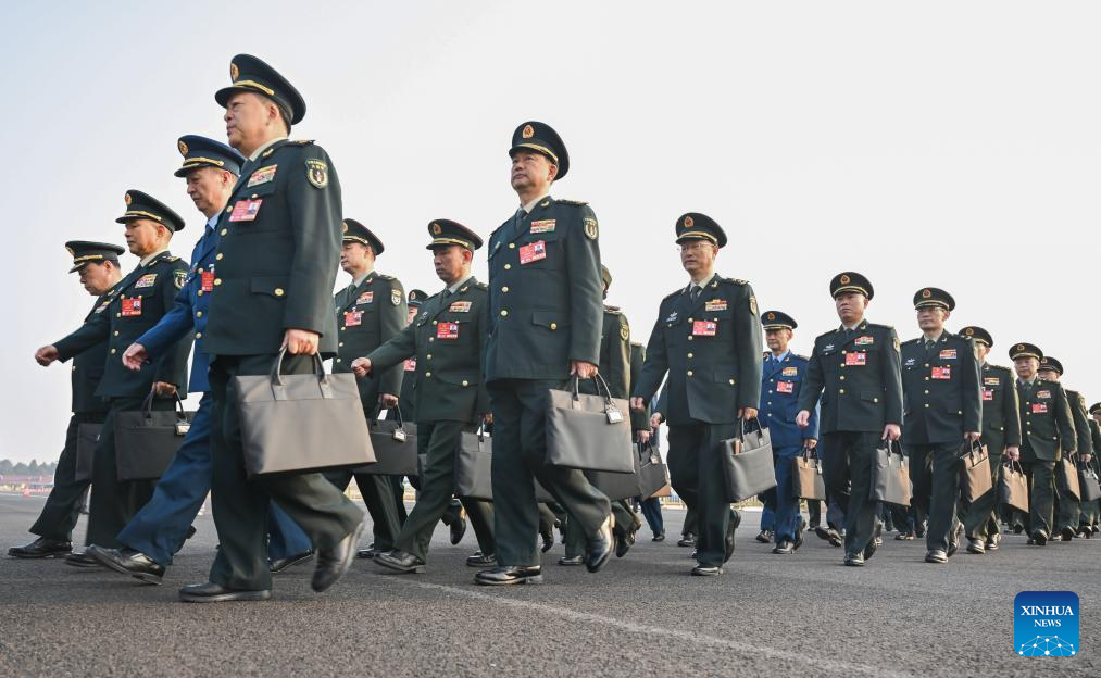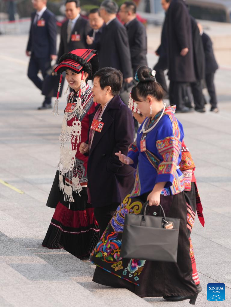 Deputies to the 14th National People's Congress (NPC) walk towards the Great Hall of the People for the second plenary meeting of the third session of the 14th NPC in Beijing, capital of China, March 8, 2025. (Xinhua/Jin Liangkuai)