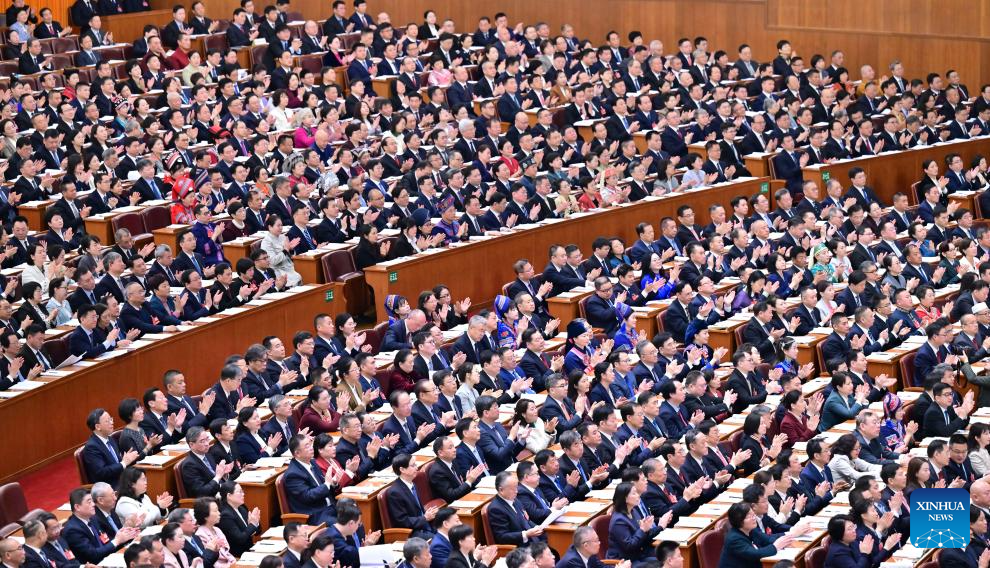 The second plenary meeting of the third session of the 14th National People's Congress (NPC) is held at the Great Hall of the People in Beijing, capital of China, March 8, 2025. (Xinhua/Pang Xinglei)