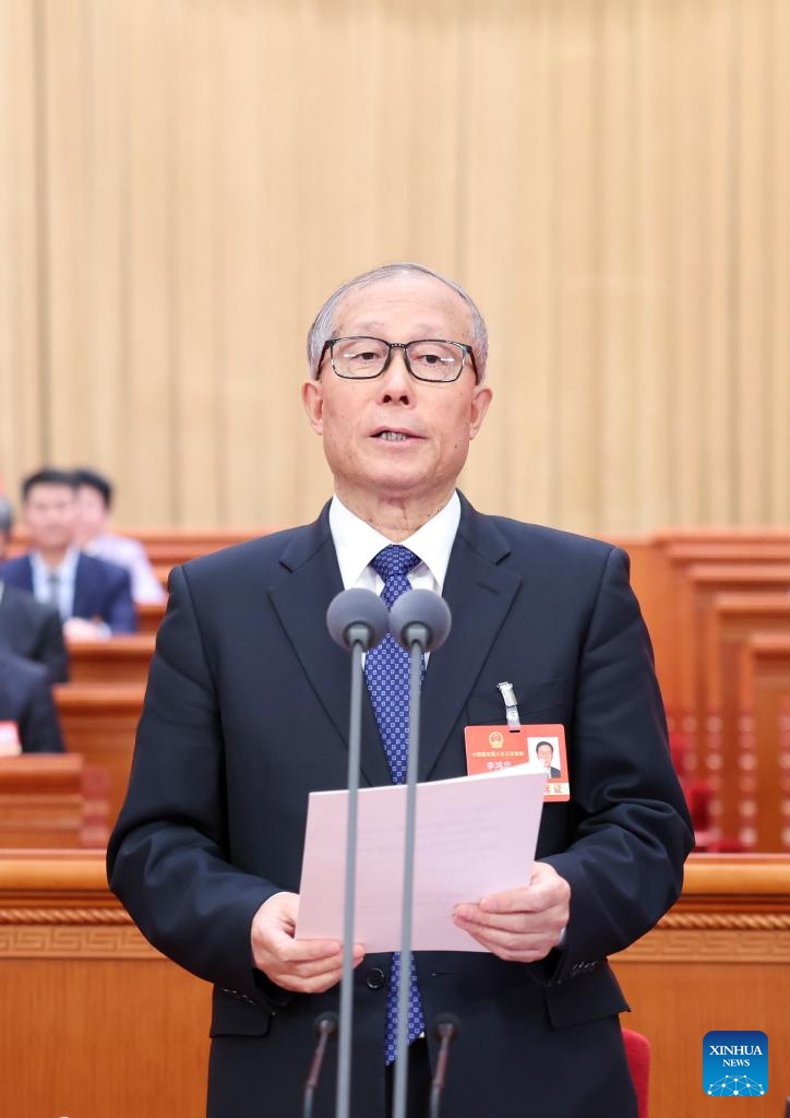 Li Hongzhong presides over the second plenary meeting of the third session of the 14th National People's Congress (NPC) at the Great Hall of the People in Beijing, capital of China, March 8, 2025. (Xinhua/Huang Jingwen)