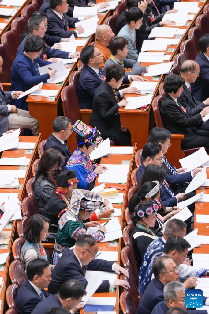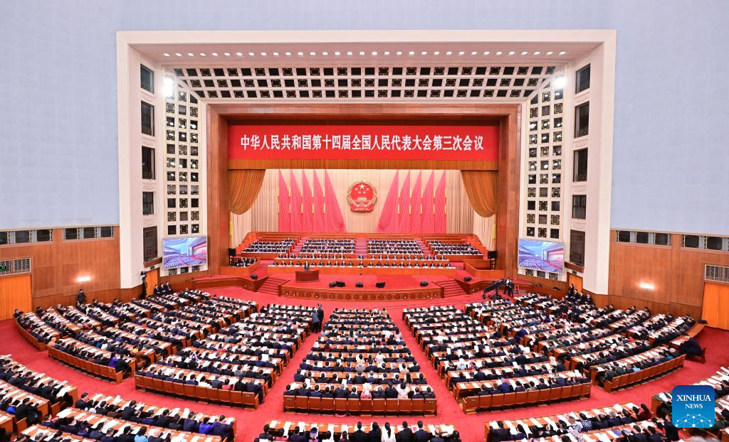 The second plenary meeting of the third session of the 14th National People's Congress (NPC) is held at the Great Hall of the People in Beijing, capital of China, March 8, 2025. (Xinhua/Li Xiang)