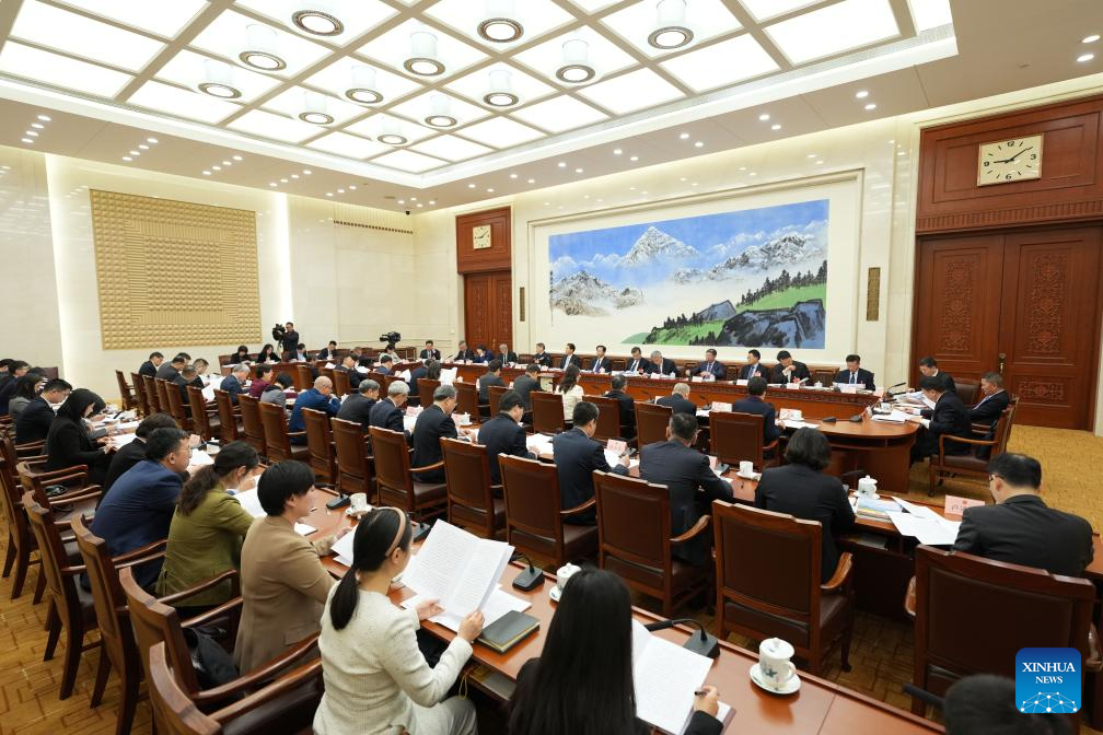 The National People's Congress (NPC) Financial and Economic Affairs Committee holds a plenary meeting to review reports and drafts on budgets and economic and social development plans at the third session of the 14th NPC in Beijing, capital of China, March 7, 2025. (Xinhua/Zheng Huansong)