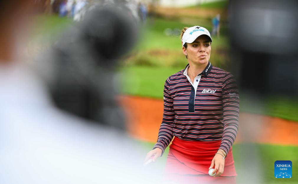 Gaby Lopez of Mexico reacts during the third round of the Blue Bay LPGA golf tournament in Lingshui, south China's Hainan Province, March 8, 2025. (Xinhua/Yang Guanyu)