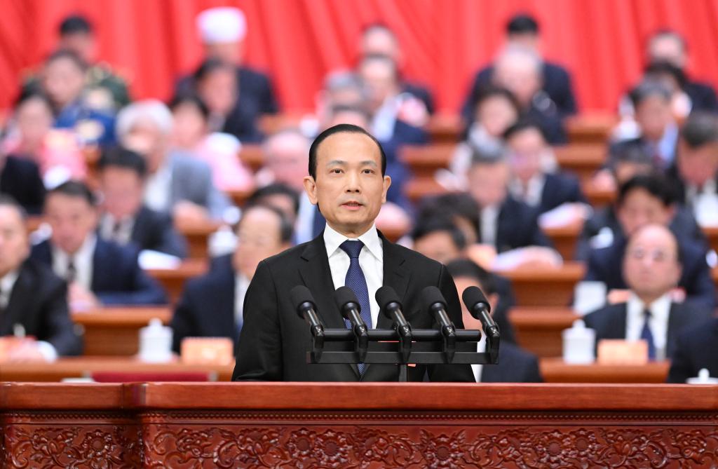 Su Hui presides over the third plenary meeting of the third session of the 14th National Committee of the Chinese People's Political Consultative Conference (CPPCC) at the Great Hall of the People in Beijing, capital of China, March 9, 2025. (Xinhua/Li Xueren)