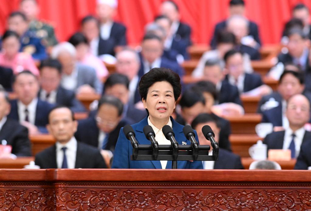 Zhao Yingmin, a member of the 14th National Committee of the Chinese People's Political Consultative Conference (CPPCC), speaks at the third plenary meeting of the third session of the 14th CPPCC National Committee at the Great Hall of the People in Beijing, capital of China, March 9, 2025. (Xinhua/Liu Weibing)