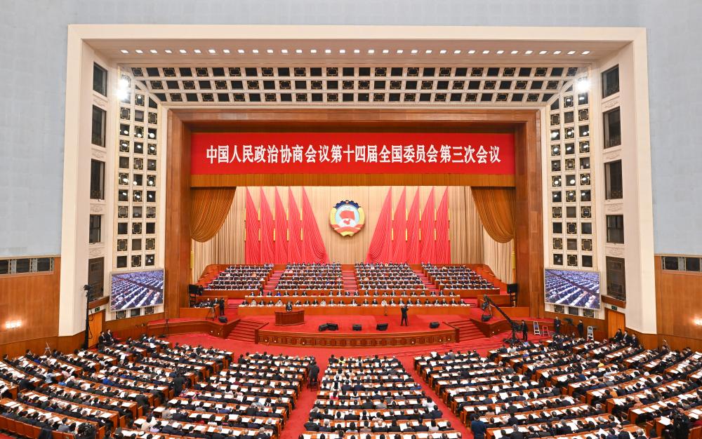 The third plenary meeting of the third session of the 14th National Committee of the Chinese People's Political Consultative Conference (CPPCC) is held at the Great Hall of the People in Beijing, capital of China, March 9, 2025. (Xinhua/Rao Aimin)