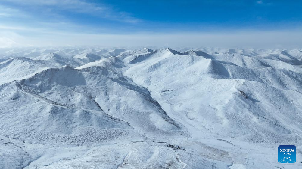 An aerial drone photo taken on March 8, 2025 shows the snow scenery in Gande County of Tibetan Autonomous Prefecture of Golog, northwest China's Qinghai Province. (Xinhua/Zhang Long)