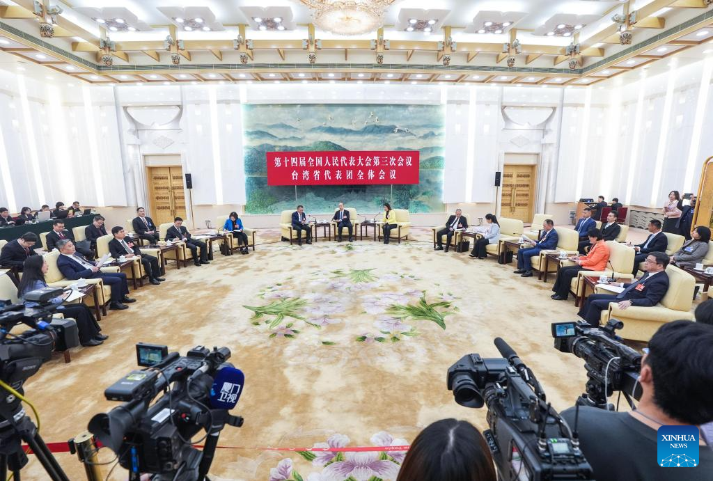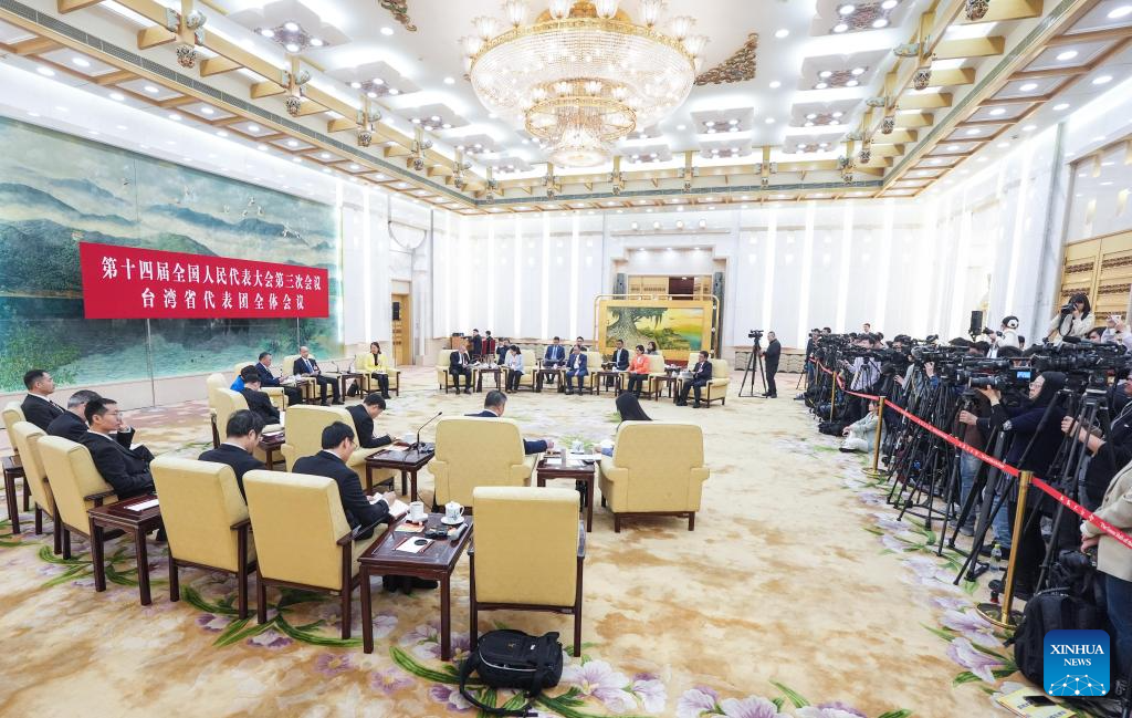 A group meeting of deputies from the Taiwan delegation is held at the third session of the 14th National People's Congress (NPC) in Beijing, capital of China, March 9, 2025. (Xinhua/Chen Yehua)