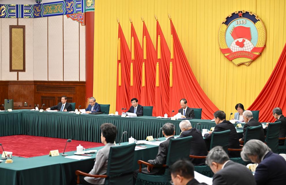 Wang Huning, a member of the Standing Committee of the Political Bureau of the Communist Party of China Central Committee and chairman of the Chinese People's Political Consultative Conference (CPPCC) National Committee, chairs a meeting of the Chairpersons Council of the 14th CPPCC National Committee in Beijing, capital of China, March 9, 2025. (Xinhua/Yue Yuewei)