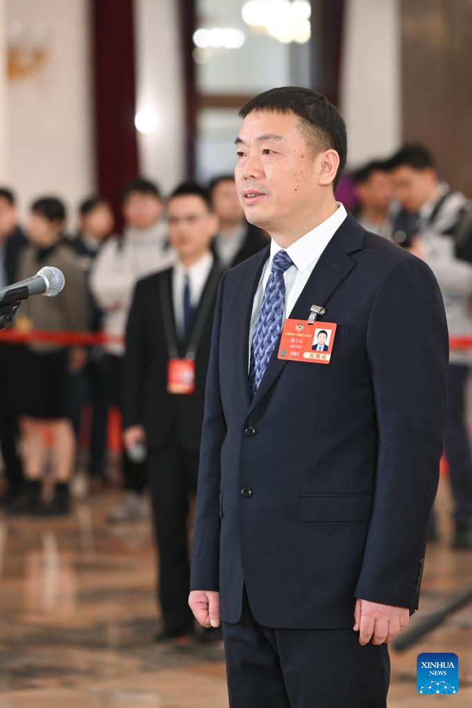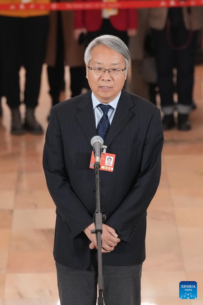 Lian Yuming, a member of the 14th National Committee of the Chinese People's Political Consultative Conference (CPPCC), attends a group interview ahead of the closing meeting of the third session of the 14th CPPCC National Committee at the Great Hall of the People in Beijing, capital of China, March 10, 2025. (Xinhua/Cai Yang)