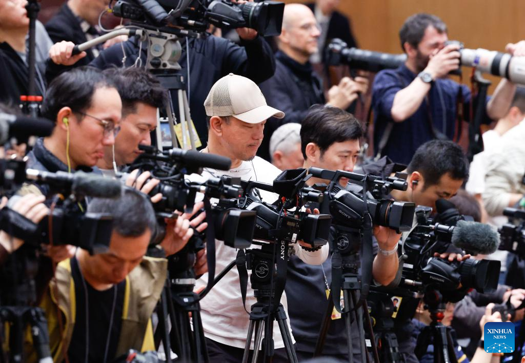 Journalists work at the closing meeting of the third session of the 14th National Committee of the Chinese People's Political Consultative Conference (CPPCC) at the Great Hall of the People in Beijing, capital of China, March 10, 2025. (Xinhua/Zhang Yuwei)