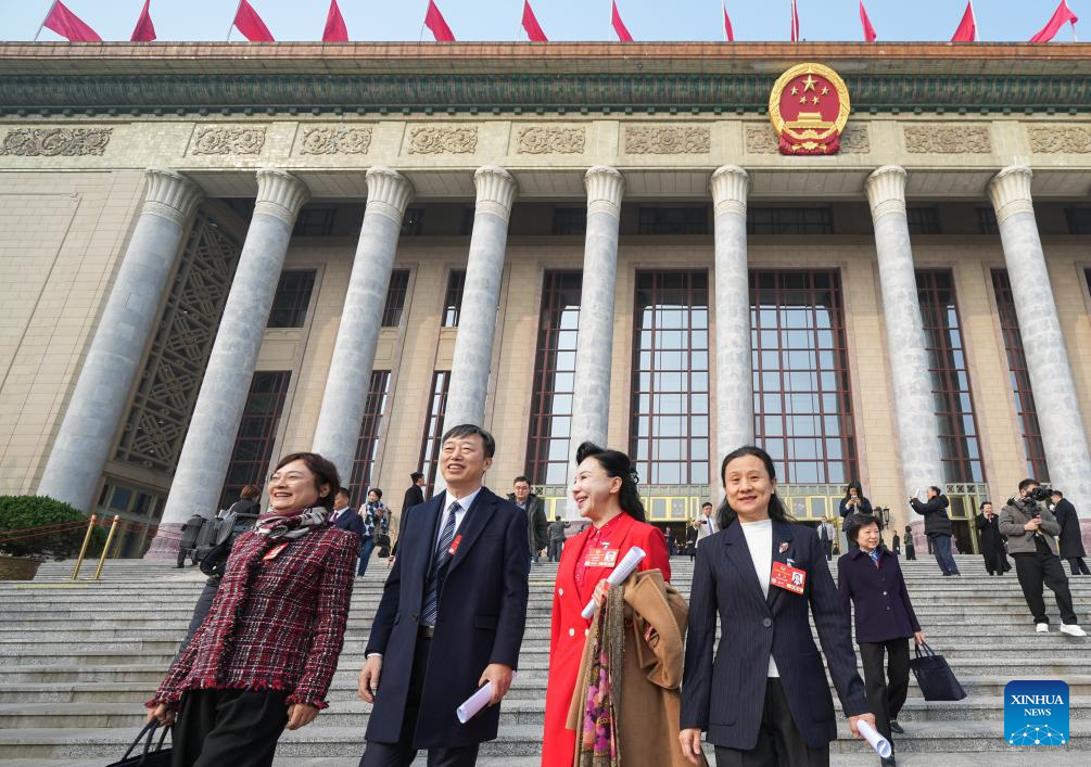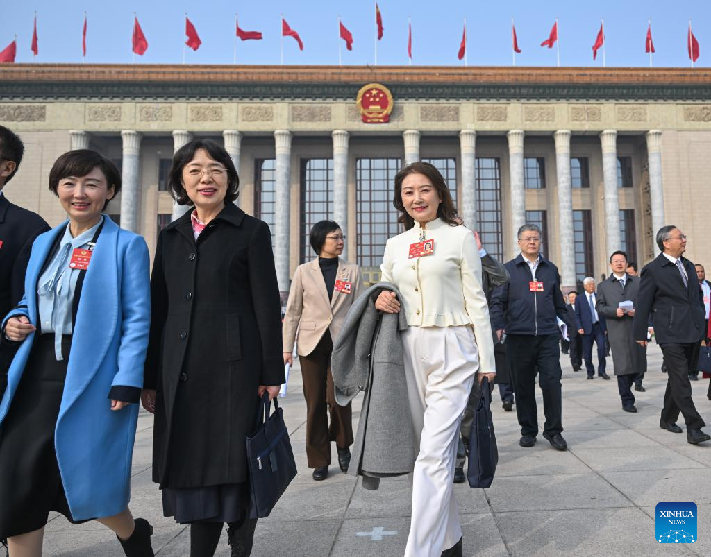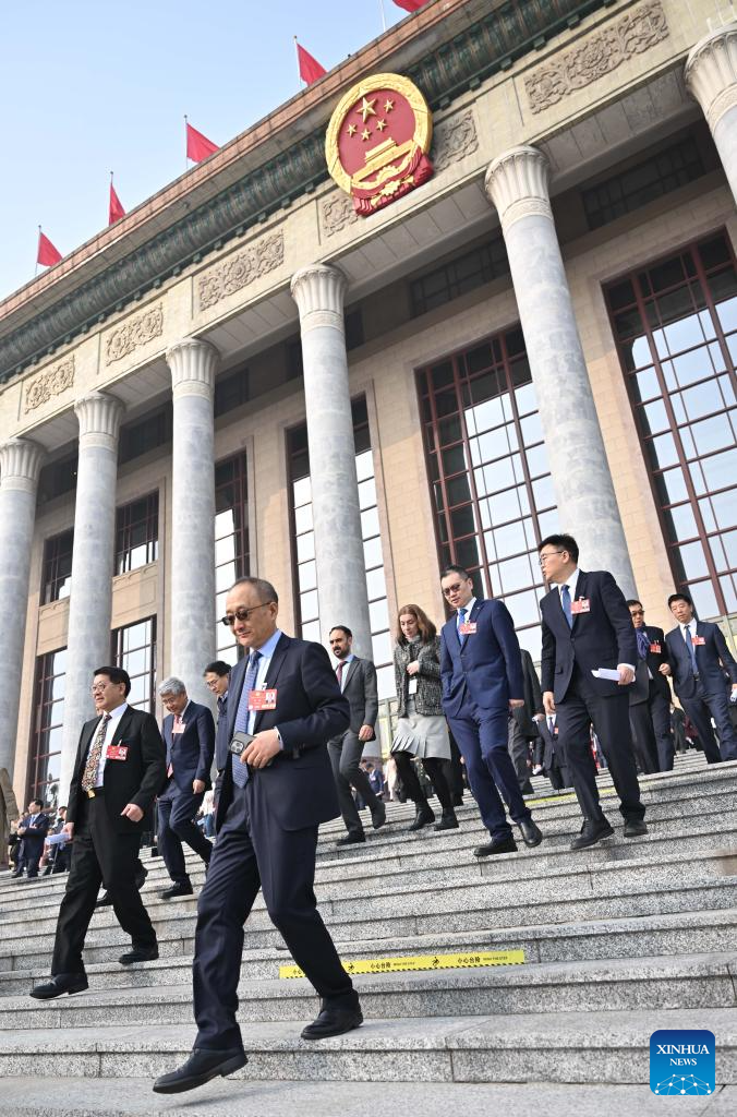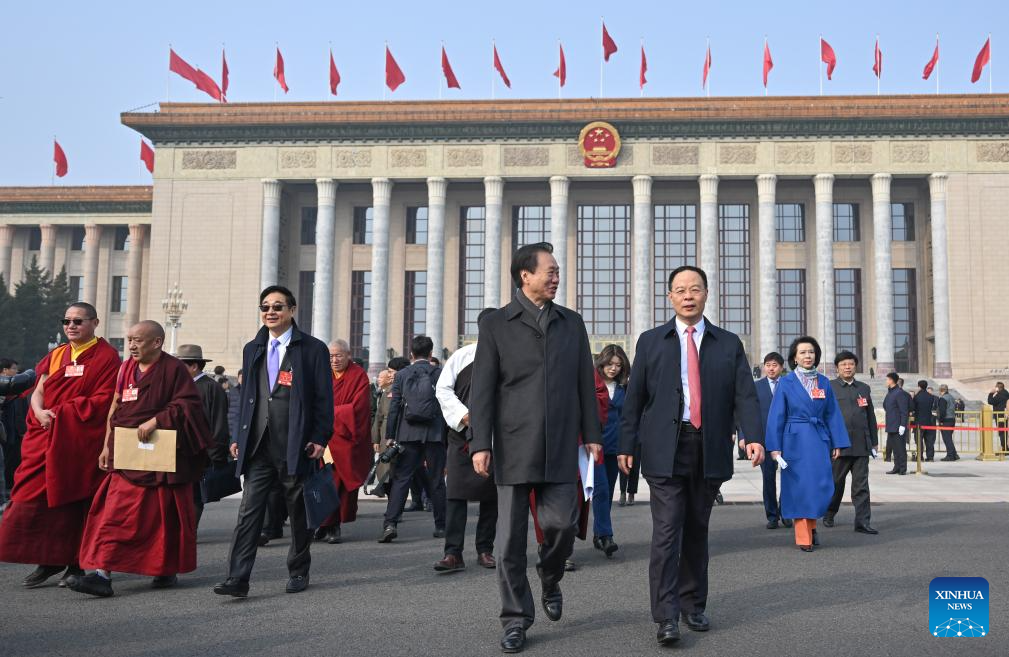 Members of the 14th National Committee of the Chinese People's Political Consultative Conference (CPPCC) leave the Great Hall of the People after the closing meeting of the third session of the 14th CPPCC National Committee in Beijing, capital of China, March 10, 2025. (Xinhua/Jin Liangkuai)