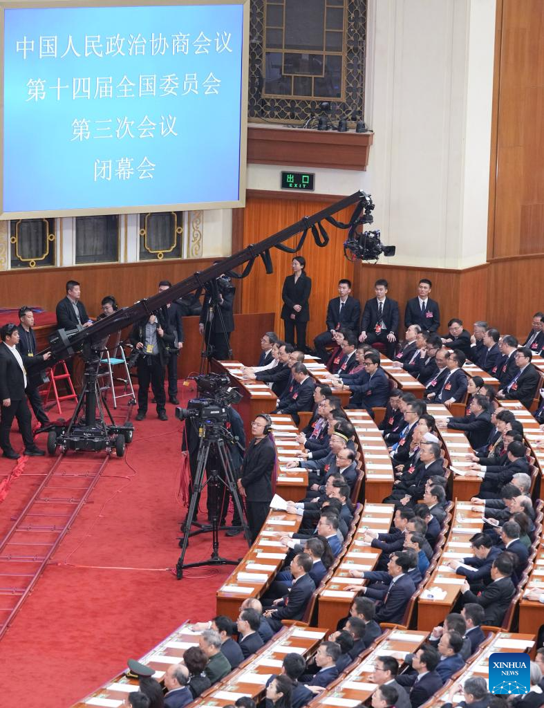 The closing meeting of the third session of the 14th National Committee of the Chinese People's Political Consultative Conference (CPPCC) is held at the Great Hall of the People in Beijing, capital of China, March 10, 2025. (Xinhua/Yue Yuewei)