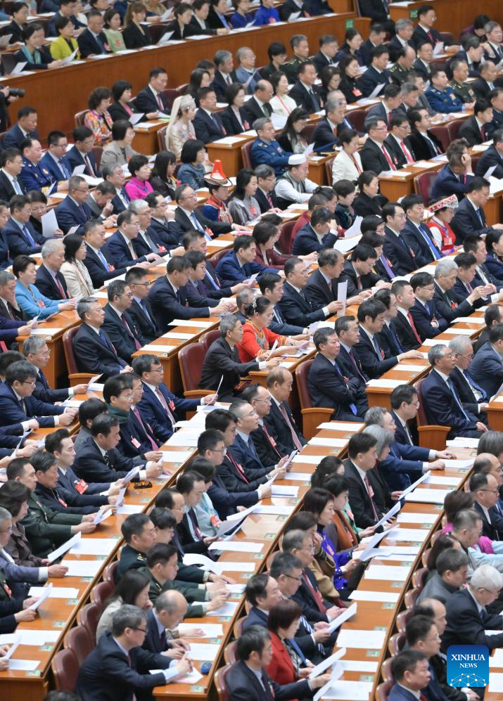 Chinese President Xi Jinping and other leaders including Li Qiang, Cai Qi, Ding Xuexiang, Li Xi and Han Zheng attended the closing meeting of the third session of the 14th National Committee of the Chinese People's Political Consultative Conference (CPPCC) at the Great Hall of the People in Beijing.
