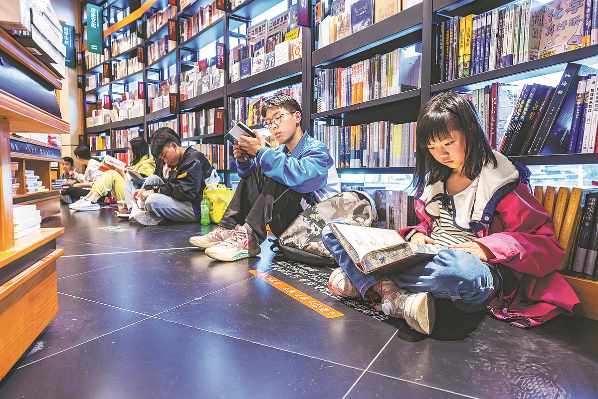 Children read books at a bookstore in Anshun, Guizhou province, on April 21. (Chen Xi/Xinhua)
