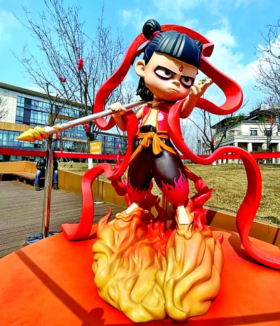 Photo shows a statue of Nezha, the main character from the Chinese animated blockbuster "Ne Zha 2." (Photo/Xinhua)