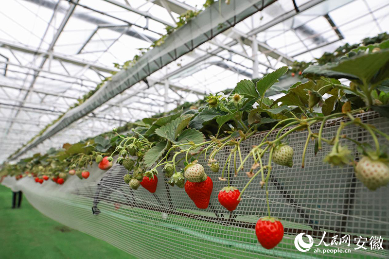 Photo shows strawberries in a greenhouse in Changfeng county, Hefei, east China's Anhui Province. (People's Daily Online/Zhang Jun)