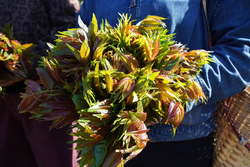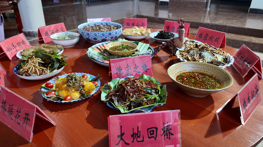 Photo shows Chinese mahogany shoot dishes. (Photo courtesy of the People's Government of Xuangang township, Mangshi city, Dehong Dai and Jingpo Autonomous Prefecture)