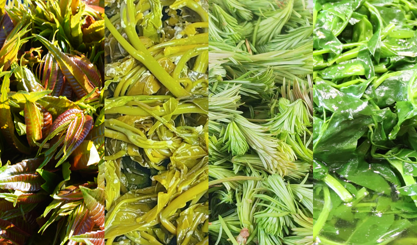 Combo photo shows wild and edible spring plants in southwest China's Yunnan Province.