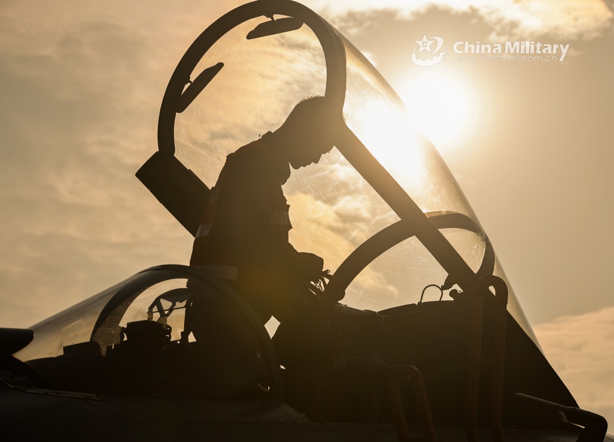 A pilot assigned to an aviation brigade with the air force under the Chinese PLA Southern Theater Command steps into the cockpit of his fighter jet and performs pre-flight inspections during a flight training exercise on February 20, 2025. (eng.chinamil.com.cn/Li Chengshen)