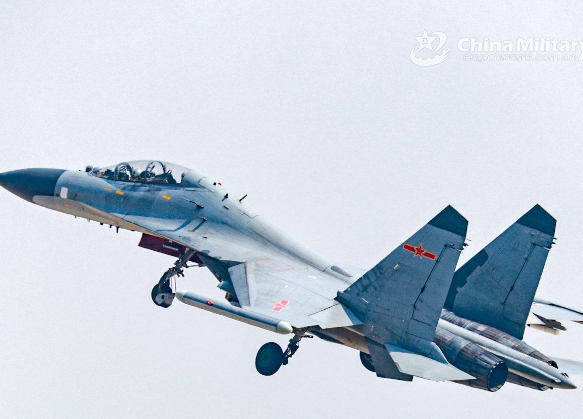 A fighter jet attached to an aviation brigade with the air force under the Chinese PLA Southern Theater Command speeds up to climb during a flight training exercise on February 20, 2025. (eng.chinamil.com.cn/Li Chengshen)