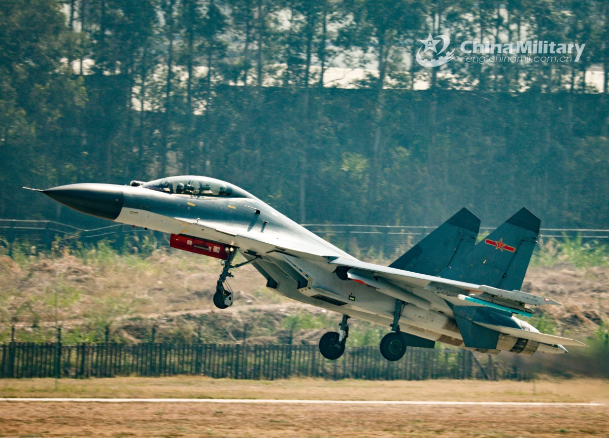 A fighter jet attached to an aviation brigade with the air force under the Chinese PLA Southern Theater Command takes off for a flight training exercise on February 20, 2025. (eng.chinamil.com.cn/Li Chengshen)