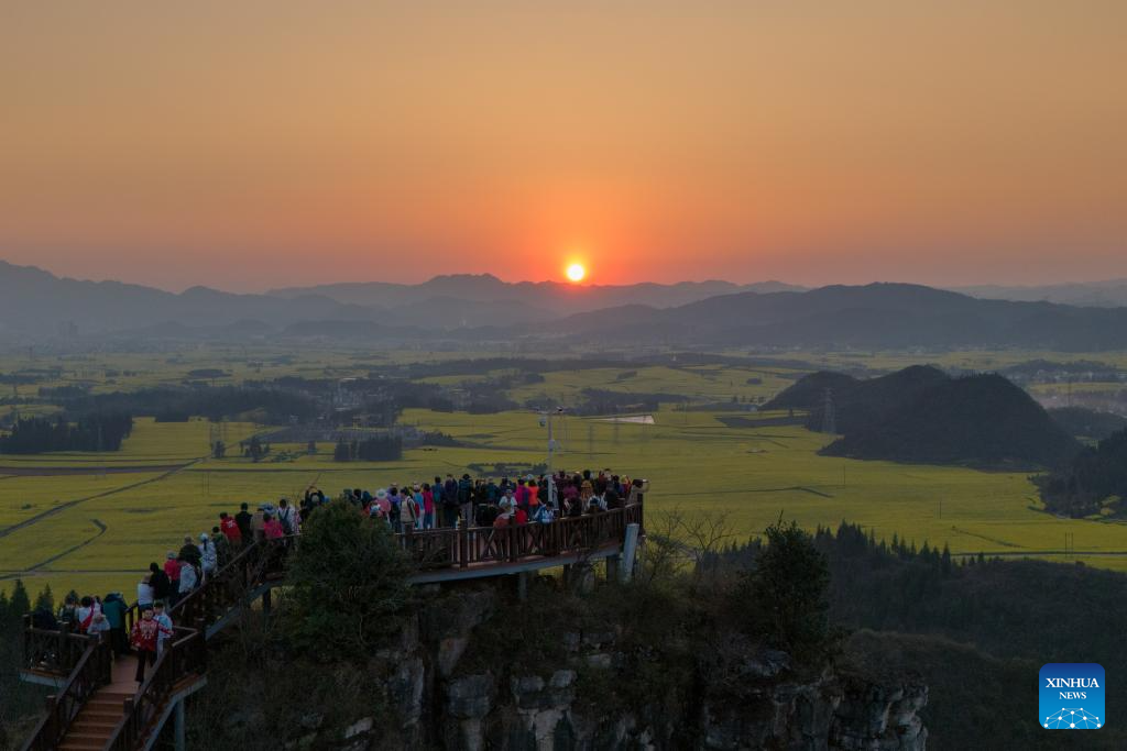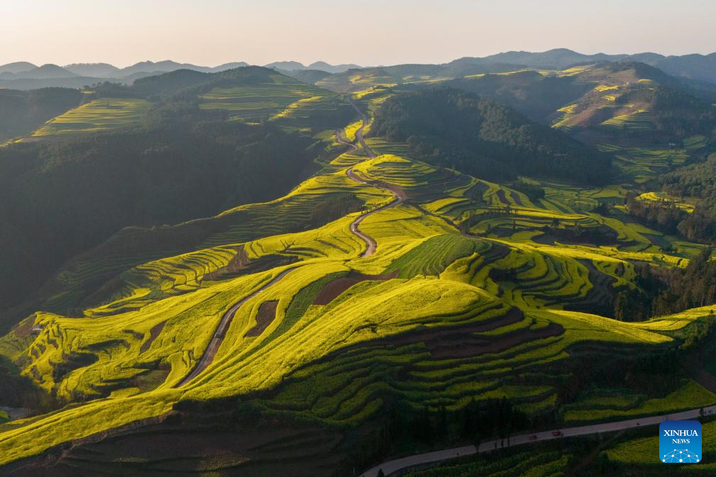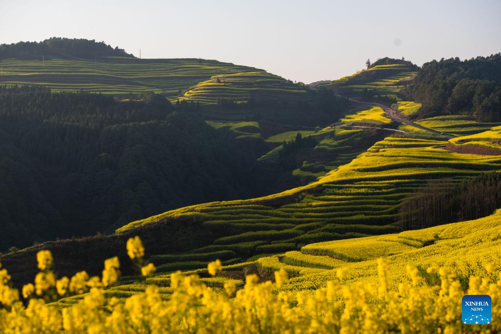 This photo shows cole flower fields in Luoping County, southwest China's Yunnan Province, March 11, 2025. (Photo by Peng Yikai/Xinhua)