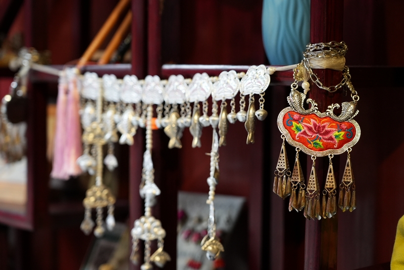At the fair for cultural and creative products in the ancient town, ICH-inspired cultural and creative products have become hot commodities for tourists. Products like batik clothing, embroidered handbags, and silver crafts maintain their traditional cultural essence while incorporating modern aesthetic elements, becoming must-have items for visitors.
