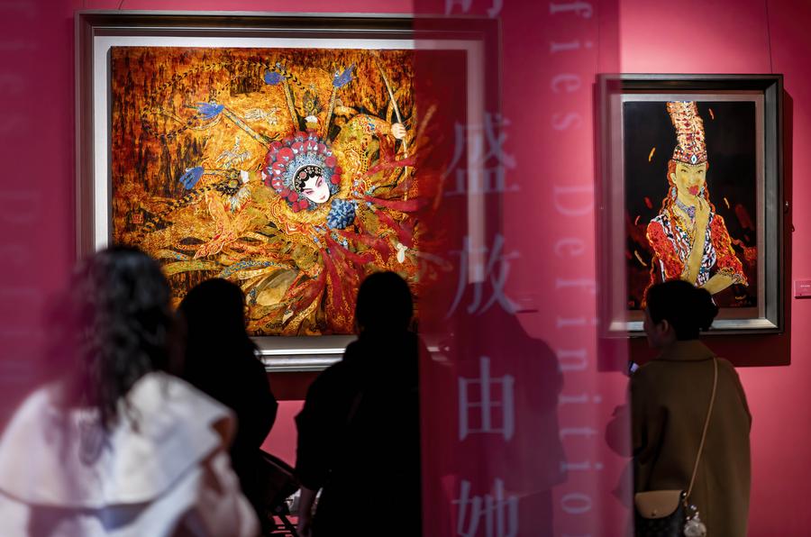 People look at artwork of lacquerware at a museum in Fuzhou, southeast China's Fujian Province, March 7, 2025. (Xinhua/Wei Peiquan)