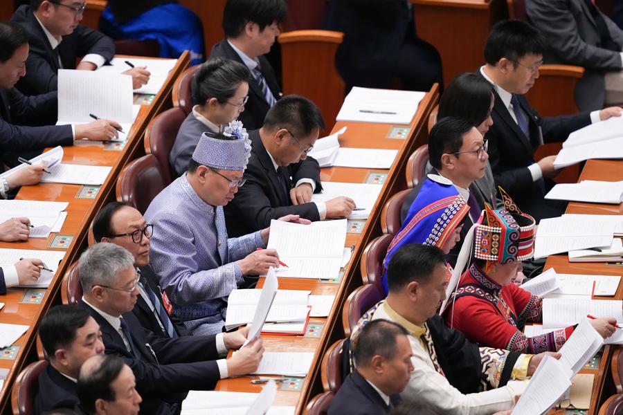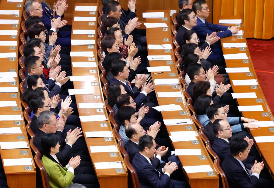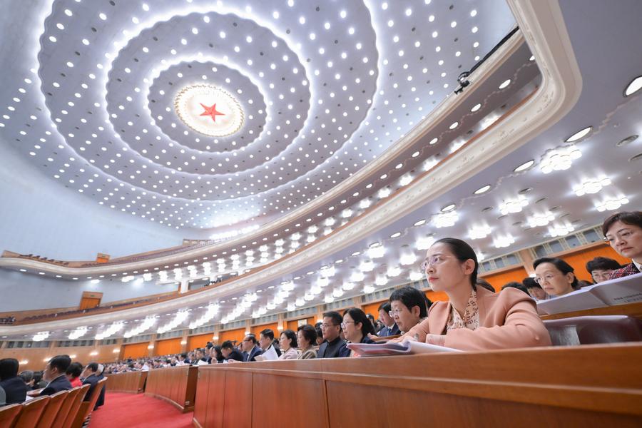 The second plenary meeting of the third session of the 14th National People's Congress (NPC) is held at the Great Hall of the People in Beijing, capital of China, March 8, 2025. (Xinhua/Lyu Shuai)