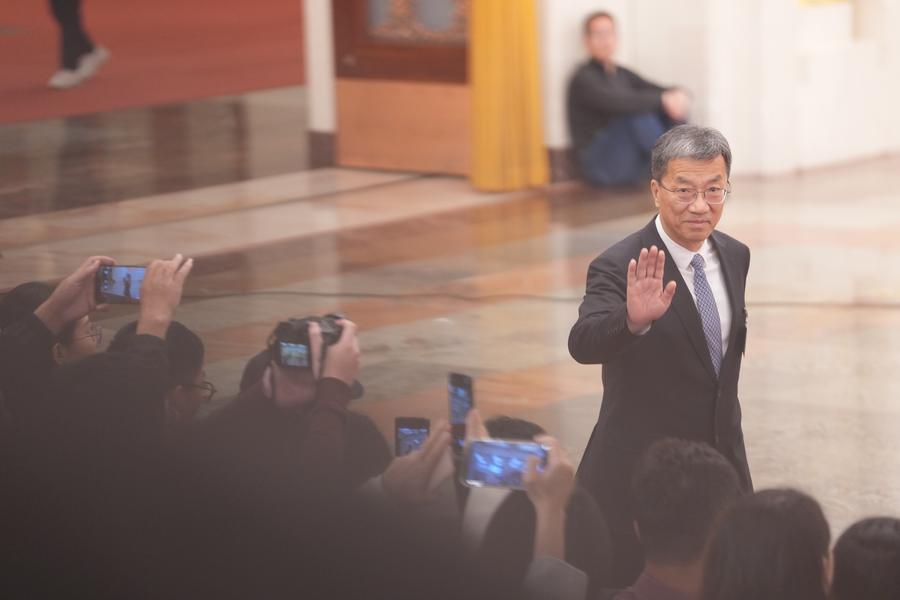 China's Minister of Education Huai Jinpeng arrives for an interview after the opening meeting of the third session of the 14th National People's Congress (NPC) at the Great Hall of the People in Beijing, capital of China, March 5, 2025. (Xinhua/Chen Yehua)