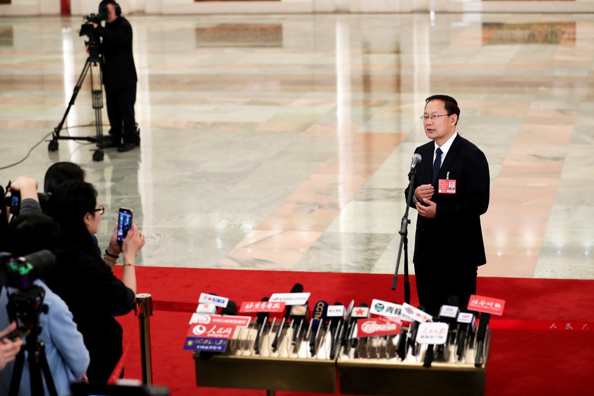 Sun Yeli, minister of culture and tourism, attends an interview after the closing meeting of the third session of the 14th National People's Congress at the Great Hall of the People in Beijing on Tuesday. (Kuang Linhua/China Daily)
