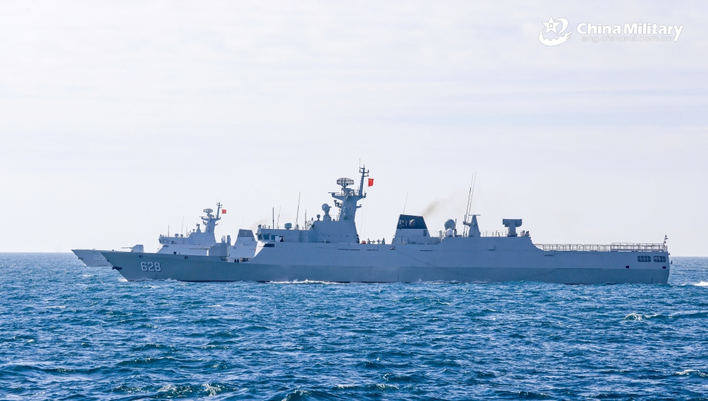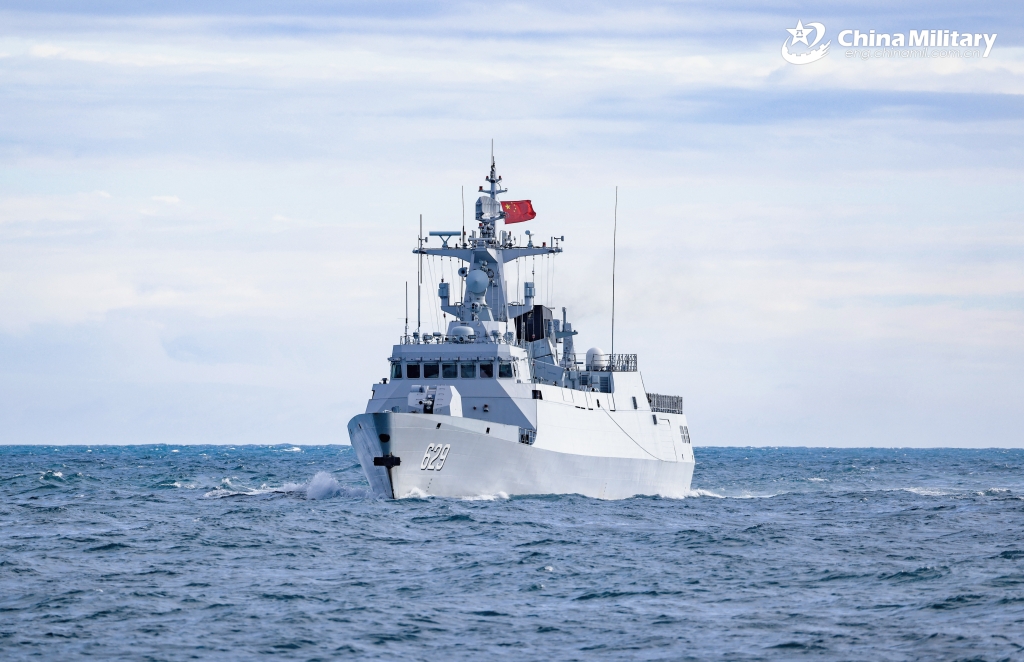 Frigate Tongling (Hull 629), attached to a naval frigate flotilla under the Chinese PLA Southern Theater Command, engages in an astern replenishment training during a multi-subject training exercise on February 12, 2025. (eng.chinamil.com.cn/Zhang Bin)