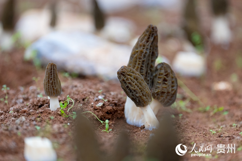 Photo shows morel mushrooms at a morel mushroom base in Xingyi city, southwest China's Guizhou Province. (People's Daily Online/Tu Min)
