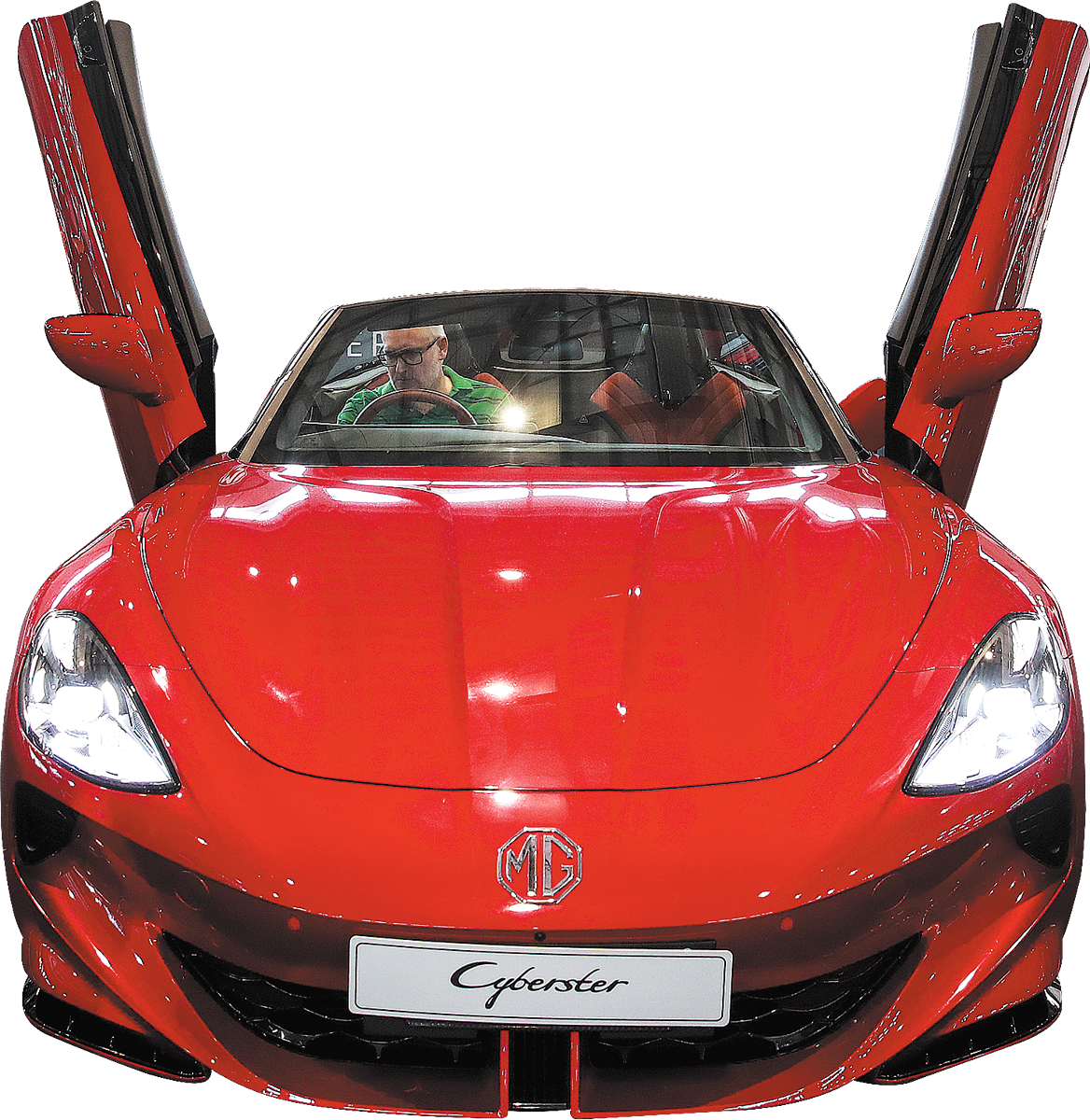 A visitor inspects SAIC's MG Cyberster electric sports car at the Everything Electric show in Sydney on March 7. (Ma Ping/Xinhua)