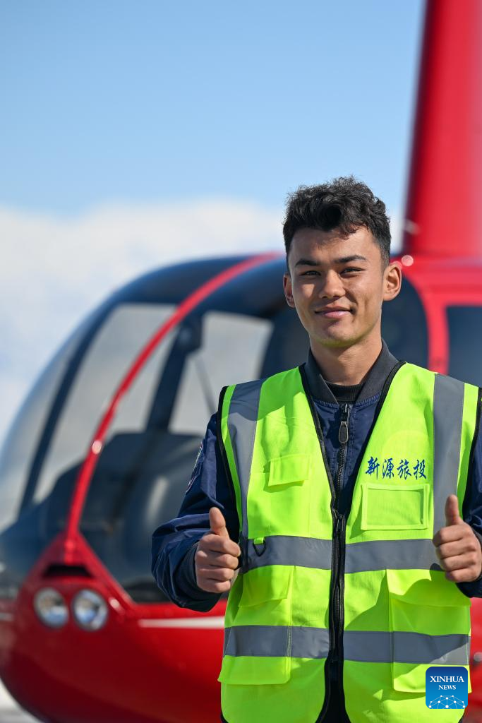 Mirbek Tlobek, 23, was born in a herdsman family of Kazakh ethnic group in northwest China's Xinjiang. Since childhood, he had dreamed of becoming a pilot. After graduating in 2023, he had the opportunity to intern at a general aviation company, and then successfully obtained private and commercial helicopter pilot licenses.