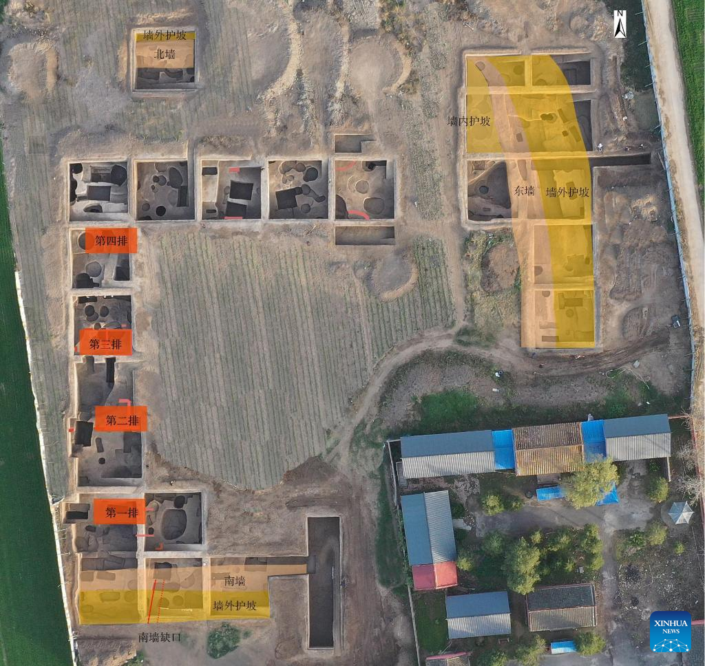 According to Li Shiwei, a researcher with the Henan Provincial Institute of Cultural Heritage and Archaeology overseeing the excavation, four walls were discovered in the east, west, south and north directions, measuring between 2.6 and 3.4 meters in width. The outer sides of the walls feature multiple layers of slope protection.