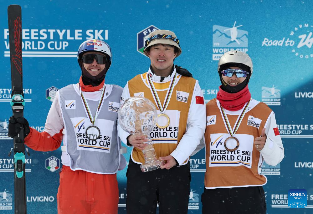 In the men's aerials, Sun Jiaxu took silver with 113.73, while Wang Xindi, winner of the World Cup Almaty stop, ranked fourth with 101.00. Swiss Noe Roth won the gold medal with 130.05, and his compatriot Pirmin Werner was third. Olympic champion Qi Guangpu failed to make the final, but he topped the World Cup standings with 400 points.