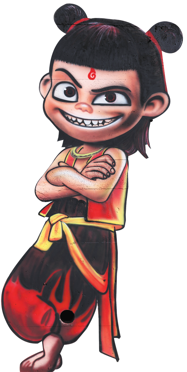A picture of Ne Zha by Wang and his team in Gaoping. (Zhu Xingxin/China Daily)