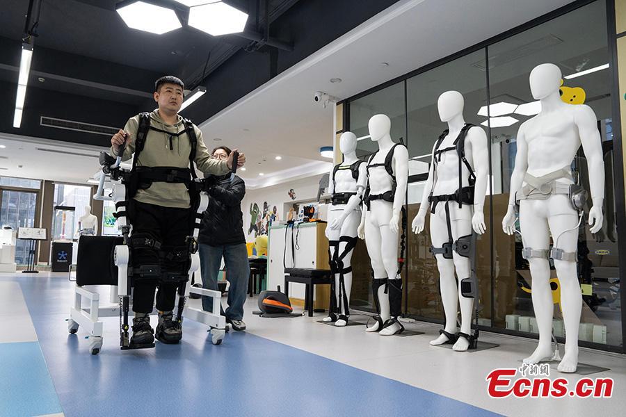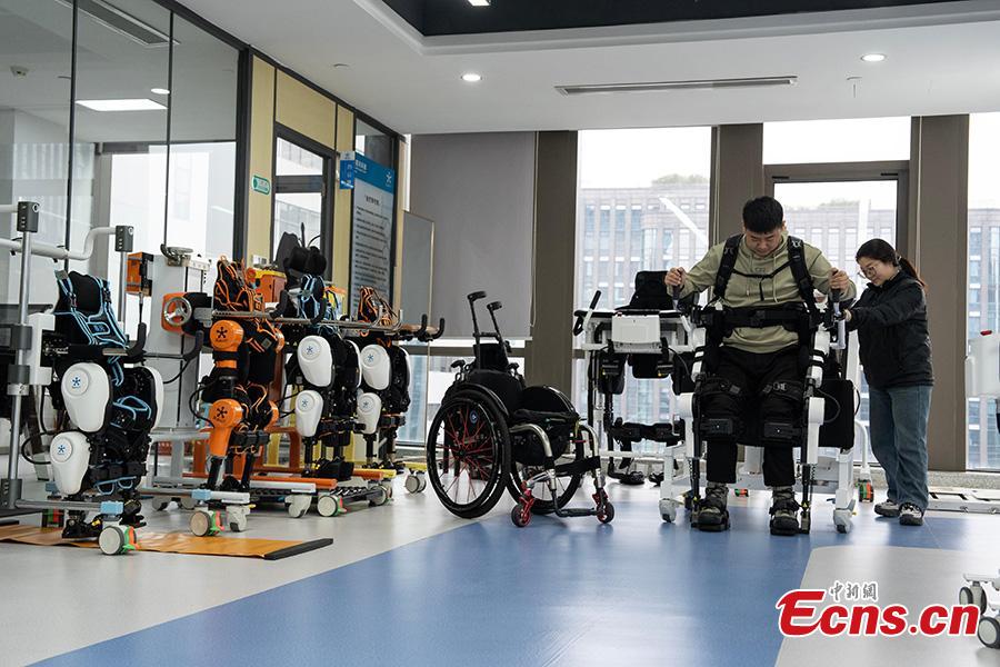 Robotic exoskeleton helps people with disabilities walk upright in Hangzhou