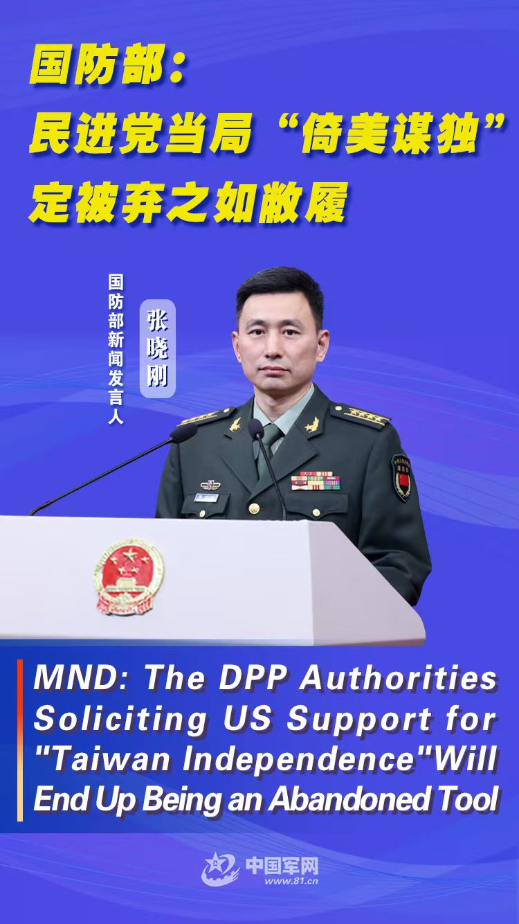 MND: The DPP authorities soliciting US support for "Taiwan Independence" will end up being an abandoned tool