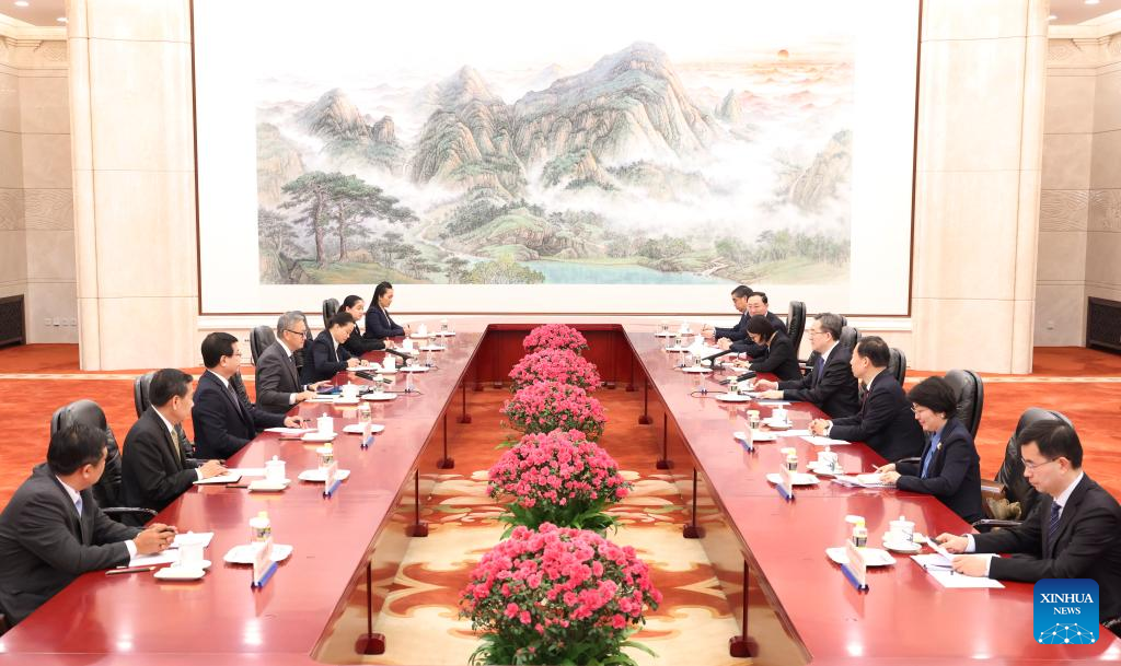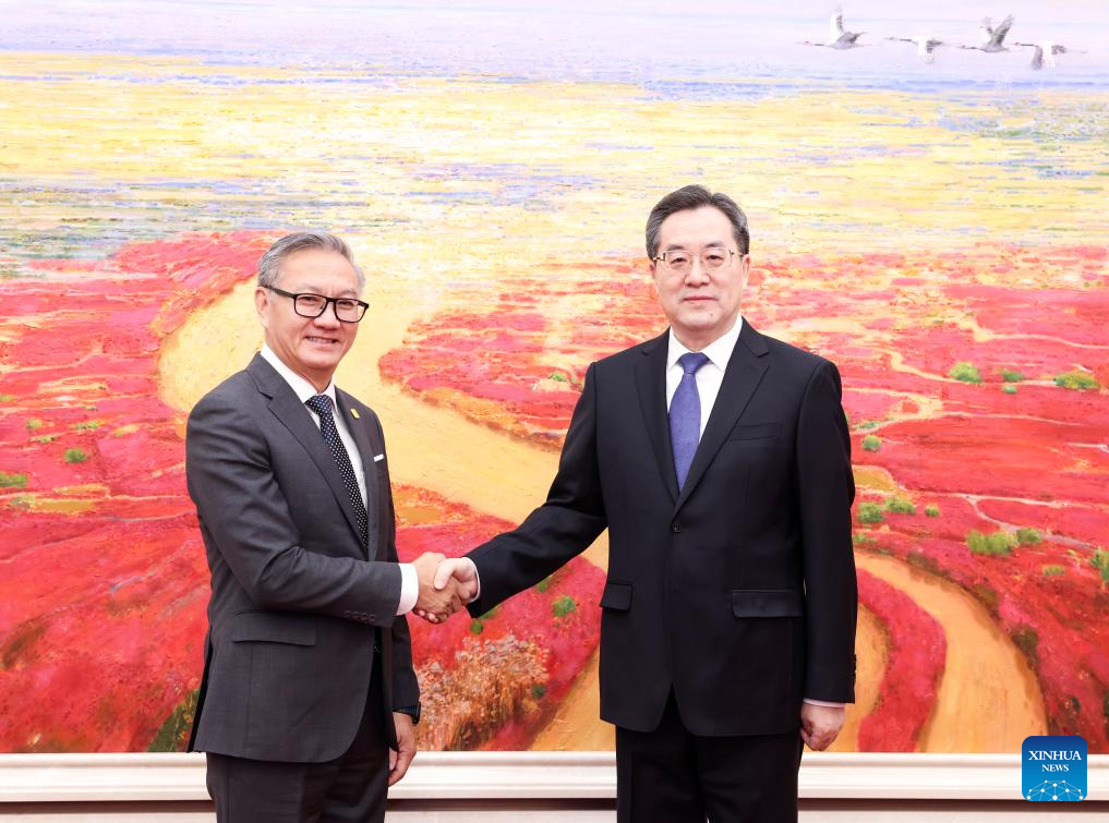 BEIJING, March 14 (Xinhua) -- Chinese Vice Premier of the State Council Ding Xuexiang met with Minister of Foreign Affairs of the Lao PDR Thongsavanh Phomvihane in Beijing on Friday, calling on both countries to expand cooperation in the fields of artificial intelligence and the digital economy.