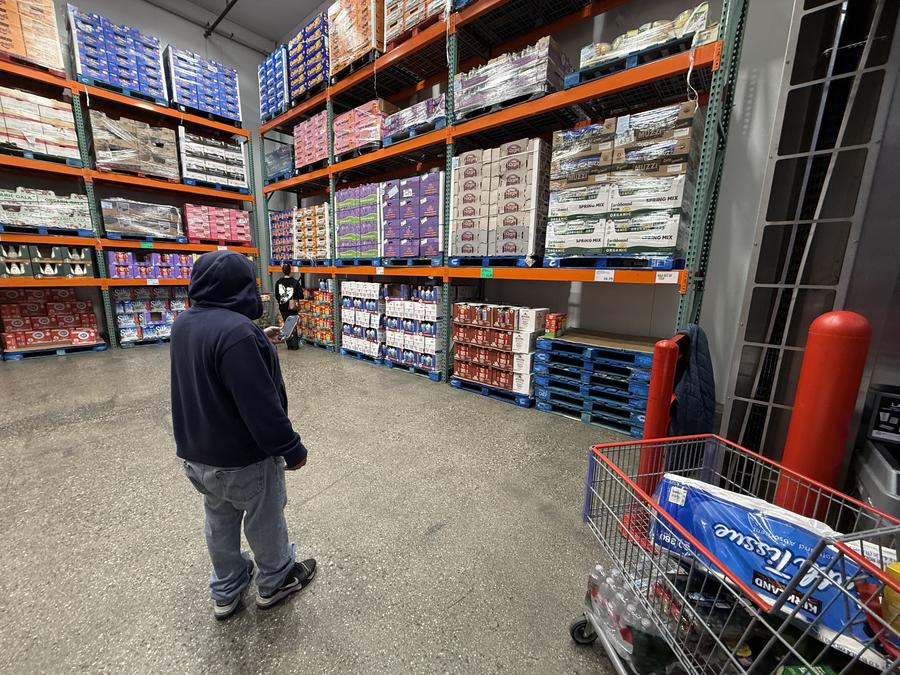 Photo taken with a mobile phone on Feb. 10, 2025 shows a customer shopping for eggs at a Costco store in Azusa, Los Angeles County, California, the United States. (Xinhua/Gao Shan)
